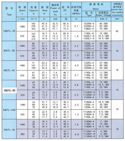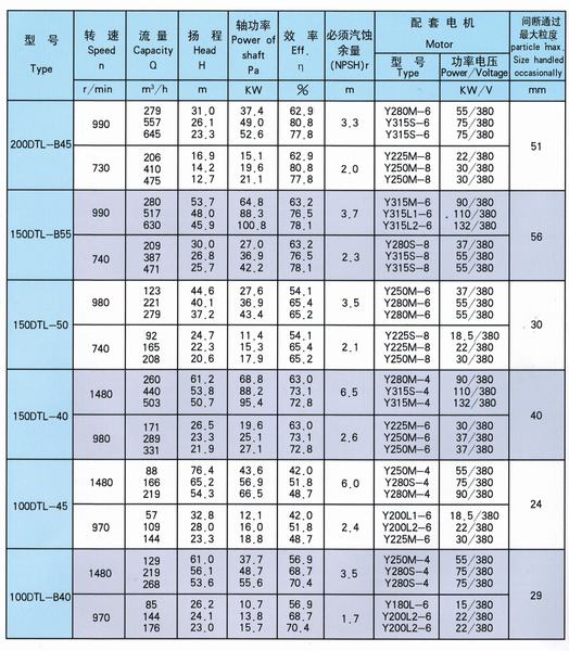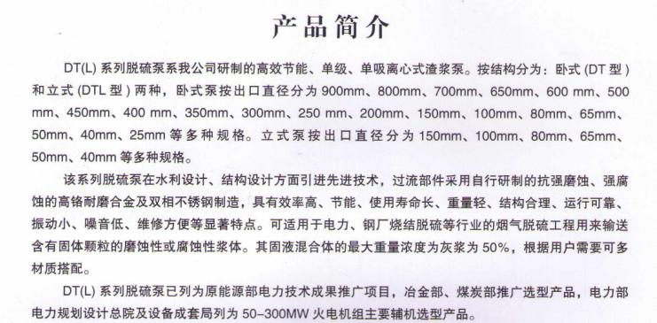 DTLϵÁÐÍÑÁò±ÃΪÖáÏòÎüÈë ¡¢µ¥¼¶µ¥Îü¡¢Íмܣ¨Ðü¼Ü£©ÀëÐÄʽ½á¹¹¡£¸ÃϵÁбÃÔÚË®Á¦Éè¼Æ¡¢½á¹¹Éè¼ÆÒÔ¼°Öý¼þËùÓòÄÁÏÉÏ£¬×ÛºÏÓ¦ÓÃÁ˹úÄÚÍâͬÀà²úÆ·µÄÓŵ㲢¼ÓÒÔ´´Ð¡£¾ßÓиßЧ½ÚÄÜ¡¢¿¹¸¯ÄÍÄ¥¡¢Õñ¶¯Ð¡¡¢ÔëÉùµÍ¡¢ÔËÐпɿ¿¡¢Ê¹ÓÃÊÙÃü³¤¡¢Î¬ÐÞ·½±ãµÈÌØµã£¬±ÃµÄ×ÛºÏÐÔÄܾӹúÄÚÁìÏÈˮƽ¡£¿É¹ã·ºÓÃÓÚ»ðµç¡¢Á¶ÂÁºÍÁ¶Ó͵ÈÐÐÒµµÄÍÑÁòϵͳÊäËÍʯ»Ò»òʯ¸à½¬Òº¡£½¬ÒºÖÐÂÈÀë×Óº¬Á¿×î¸ß¿É´ï60000ppm£¬½¬ÒºµÄphÖµÔÊÐíÔÚ2.5¡ª13Ö®¼ä£¬½¬ÒºÎ¶ȡÜ65¡æ£¬½¬ÒºÖØÁ¿Å¨¶ÈCW×î¸ß¿É´ï60%¡£